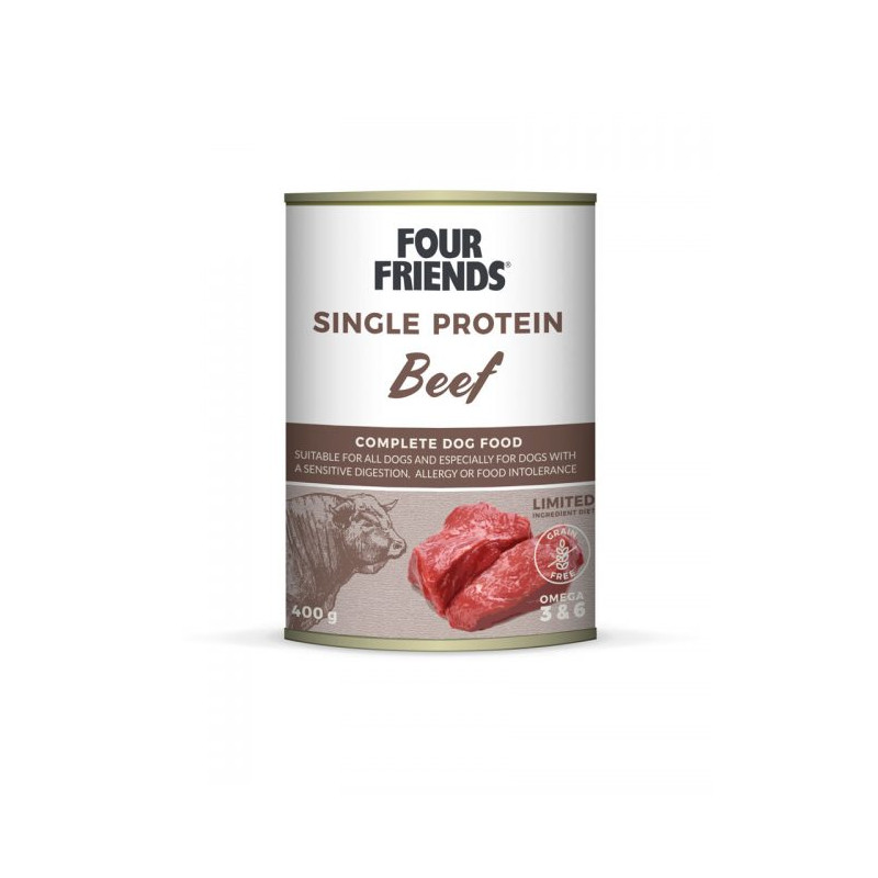 Four Friends Single Protein är ett smakligt helfoder med ett begränsat antal ingredienser och endast en proteinkälla.