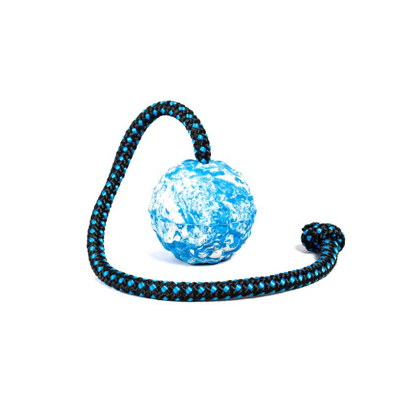 Solid boll i gummi med 40 cm rep.