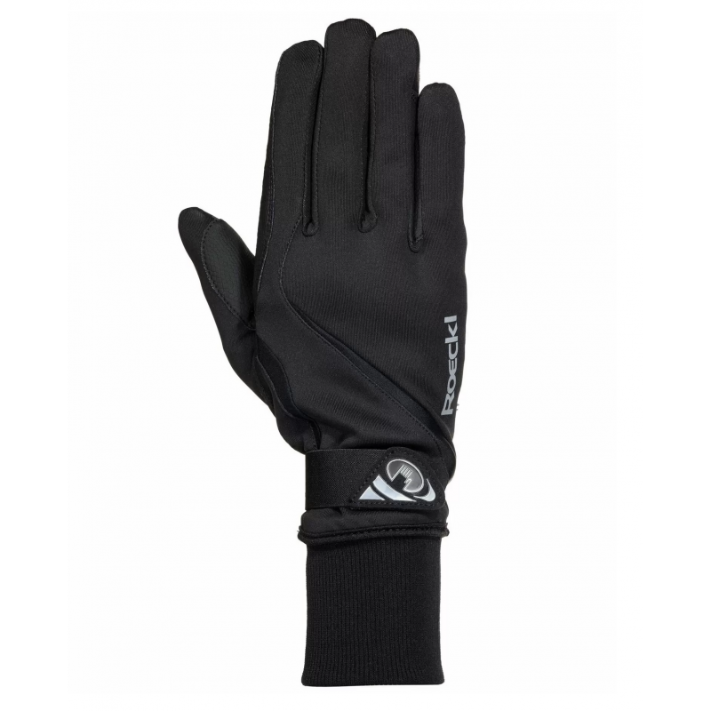 Insidan är utrustad med ROECK-GRIP®, som ger ett säkert och precist grepp om tyglarna. Reflekterande detaljer, såsom Roeckl-logotypen