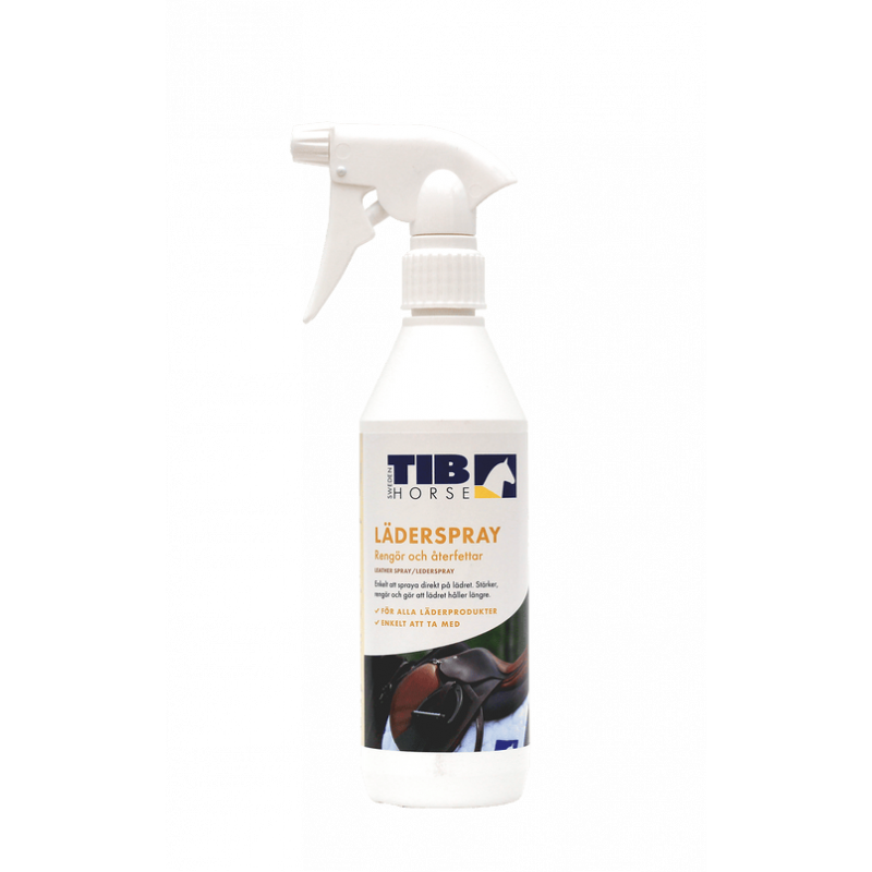 Läderspray som rengör och återfettar lädret vilket minskar risken för uttorkning med torrsprickor. Lätt att använda och ta med på tävling, enkelt att spraya direkt på lädret. Stärker, rengör och gör att lädret håller längre.