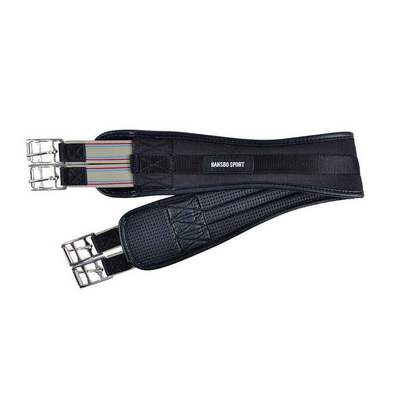 Neoprenesadelgjord i anatomisk modell, för att ge hästen extra rörelsefrihet. Trippel elastik i båda ändar. Rullspänne i järn.